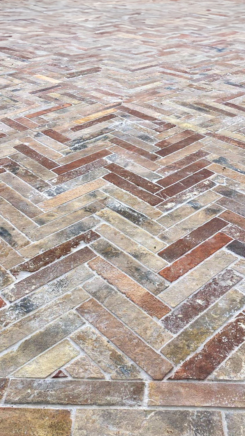 Chaque carreau de terre cuite est unique, avec des variations de couleurs et des imperfections naturelles qui font tout son charme. La disposition en chevron apporte une dynamique visuelle qui s’adapte aussi bien à un salon au style cottage rustique, qu’à une cuisine au design bohème-chic ou une entrée élégante. L’aspect authentique et les teintes chaudes créent instantanément un sentiment de confort et de bien-être.